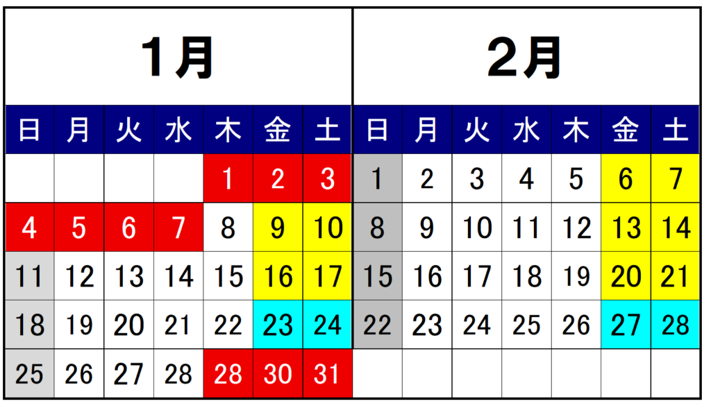 体験可能曜日はカレンダーの色分けをご確認ください。
